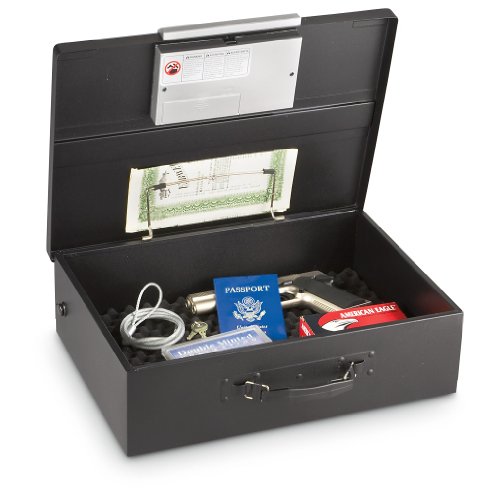Security: Sentry Large Digital Safe. Protection plus! Electronic-locking, quick-access Safe keeps handguns secure. Offers pistol-quick access to them when needed. Thanks to keyless entry, there's no searching for keys. To gain entry, push the access buttons using your pre-programmed code; 4-digit programmable touch pad; Key back up; Carry handle; Cable provided so Safe stays put; Powder-coated steel construction; Padded foam bottom; Uses 4 AA batteries (not included). 17 1/2 x 12 1/2 x 5 1/2"h., 14 lbs., 10 ozs.; Order Now! Sentry Large Digital Safe
